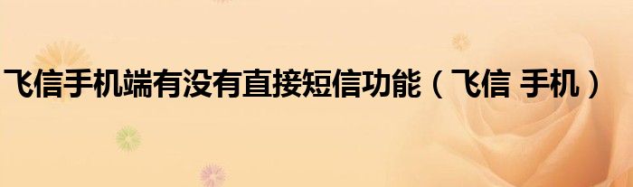 大家好,来宝来为大家解答以下问题,飞信手机端有没有直接短信功能,飞信 手机很多人还不知道,今天让我们一起来看看吧!