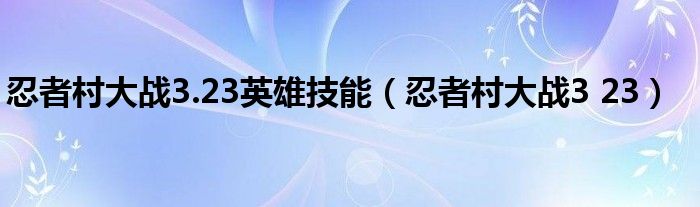 忍者村大战3.23英雄技能,忍者村大战3 23这个很多人还不知道,小飞来为大家解答以上的问题。现在让我们一起来看看吧!