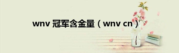 wnv 冠军含金量,wnv cn这个很多人还不知道,小飞来为大家解答以上的问题。现在让我们一起来看看吧!