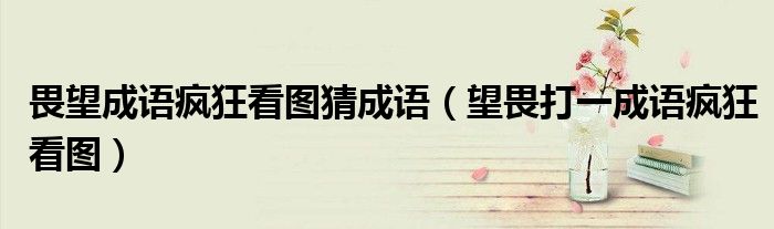 大家好,小晋来为大家解答以下问题,关于畏望成语疯狂看图猜成语,望畏打一成语疯狂看图很多人还不知道,今天让我们一起来看看吧!