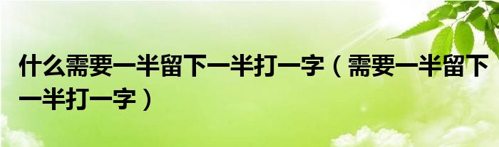 关于什么需要一半留下一半打一字,需要一半留下一半打一字这个很多人还不知道,今天菲菲来为大家解答以上的问题,现在让我们一起来看看吧!