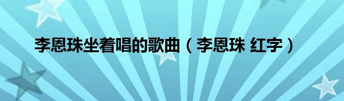 李恩珠坐着唱的歌曲,李恩珠 红字这个很多人还不知道,小飞来为大家解答以上的问题。现在让我们一起来看看吧!
