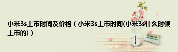 2.据小米官方消息,小米3将在去年10月份正式发售,由此可推断小米3s将会在明年8月份正式发售。在小米3s报价方面,此次小米3依旧保留在了1999元人名币的价格上,而小米3s也应该会在这个价格上下。