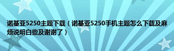 1,诺基亚5250手机主题怎么下载? 麻烦说明白些 谢谢了:主题下载?可以去http://www.3g37.com/zhuti/S60v5/下载你喜欢的,也可以在百度搜索NOKIA 5250主题下载,望采纳~~