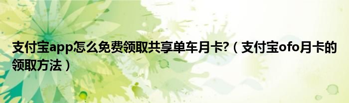 大家好,今天小悦来为大家解答以上问题。支付宝app怎么免费领取共享单车月卡?,支付宝ofo月卡的领取方法很多人还不知道,现在让我们一起来看看吧!
