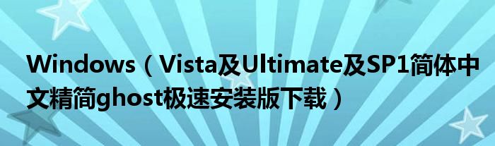 大家好,今天小悦来为大家解答以上问题。Windows,Vista及Ultimate及SP1简体中文精简ghost极速安装版下载很多人还不知道,现在让我们一起来看看吧!