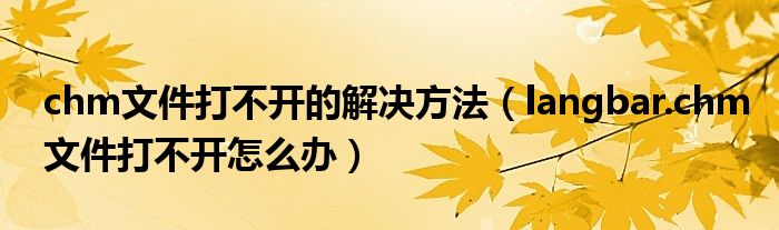 大家好,今天小悦来为大家解答以上问题。chm文件打不开的解决方法,langbar.chm文件打不开怎么办很多人还不知道,现在让我们一起来看看吧!
