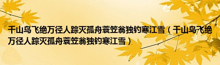 千山鸟飞绝万径人踪灭孤舟蓑笠翁独钓寒江雪,千山鸟飞绝万径人踪灭孤舟蓑笠翁独钓寒江雪这个很多人还不知道,小飞来为大家解答以上的问题。现在让我们一起来看看吧!