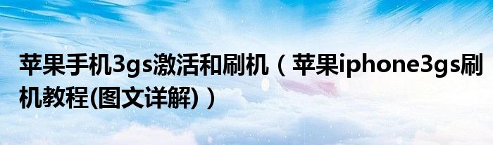 苹果手机3gs激活和刷机(苹果iphone3gs刷机教程(图文详解))