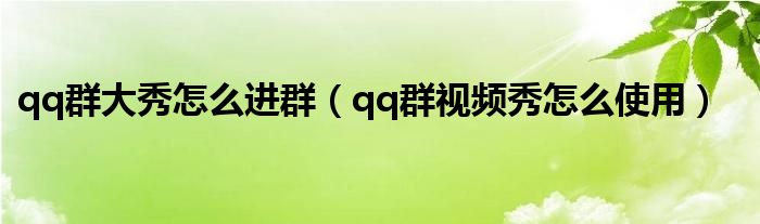 大家好,小太来为大家解答以上问题。qq群大秀怎么进群,qq群视频秀怎么使用很多人还不知道,现在让我们一起来看看吧!
