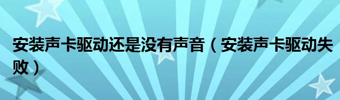 大家好,小飞来为大家解答以上问题,安装声卡驱动还是没有声音,安装声卡驱动失败很多人还不知道,现在让我们一起来看看吧!