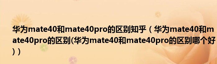 大家好,小常来为大家解答以上问题。华为mate40和mate40pro的区别知乎,华为mate40和mate40pro的区别(华为mate40和mate40pro的区别哪个好)很多人还不知道,现在让我们一起来看看吧!