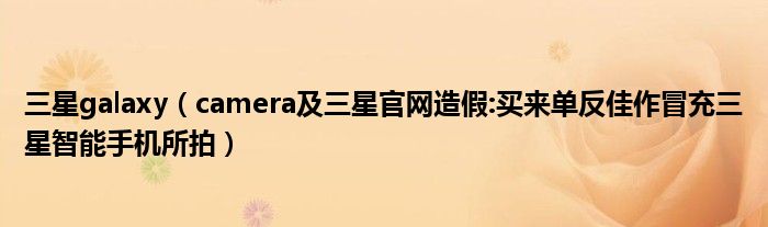 大家好,小常来为大家解答以上问题。三星galaxy,camera及三星官网造假:买来单反佳作冒充三星智能手机所拍很多人还不知道,现在让我们一起来看看吧!