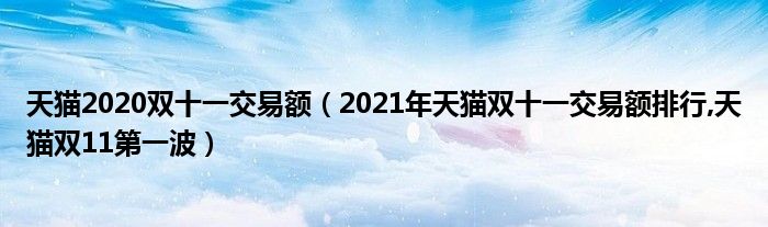 大家好,小常来为大家解答以上问题。天猫2020双十一交易额,2021年天猫双十一交易额排行,天猫双11第一波很多人还不知道,现在让我们一起来看看吧!