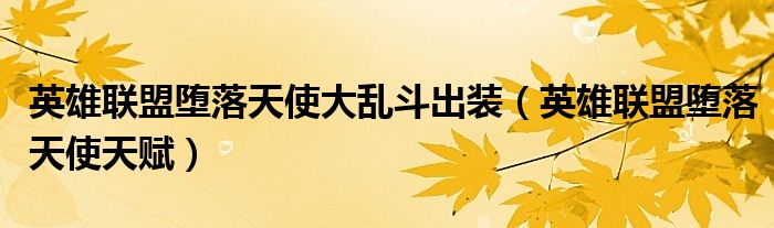 英雄联盟堕落天使大乱斗出装(英雄联盟堕落天使天赋)