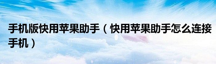 大家好,慧慧来为大家解答以上问题,手机版快用苹果助手,快用苹果助手怎么连接手机很多人还不知道,现在让我们一起来看看吧!