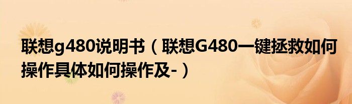 1,联想G480一键拯救如何操作。具体如何操作 - :先关机,再连按两下一键拯救系统的那个键,建议不要使用,象我电脑一键拯救系统就是坏的,重装就开不了了