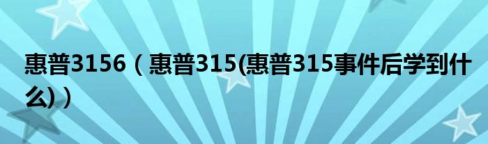 大家好,小常来为大家解答以上问题。惠普3156,惠普315(惠普315事件后学到什么)很多人还不知道,现在让我们一起来看看吧!