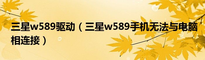 1,三星w589手机无法与电脑相连接: 建议安装usb驱动
