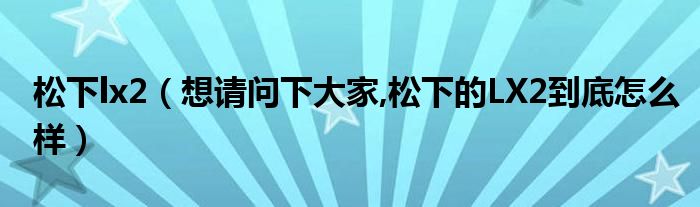 大家好,小常来为大家解答以上问题。松下lx2,想请问下大家,松下的LX2到底怎么样很多人还不知道,现在让我们一起来看看吧!