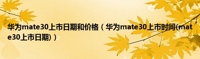 大家好,小常来为大家解答以上问题。华为mate30上市日期和价格,华为mate30上市时间(mate30上市日期)很多人还不知道,现在让我们一起来看看吧!