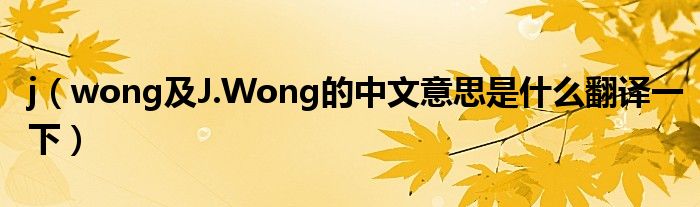 大家好,小常来为大家解答以上问题。j,wong及J.Wong的中文意思是什么翻译一下很多人还不知道,现在让我们一起来看看吧!