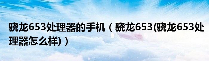 大家好,小常来为大家解答以上问题。骁龙653处理器的手机,骁龙653(骁龙653处理器怎么样)很多人还不知道,现在让我们一起来看看吧!