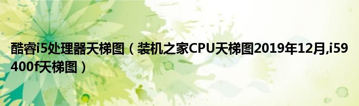 大家好,小常来为大家解答以上问题。酷睿i5处理器天梯图,装机之家CPU天梯图2019年12月,i59400f天梯图很多人还不知道,现在让我们一起来看看吧!