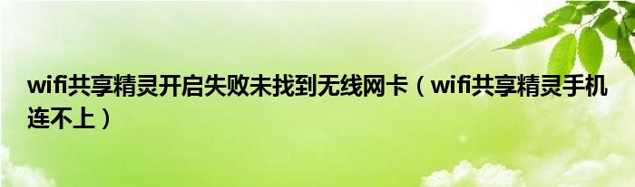 大家好,慧慧来为大家解答以上问题,wifi共享精灵开启失败未找到无线网卡,wifi共享精灵手机连不上很多人还不知道,现在让我们一起来看看吧!