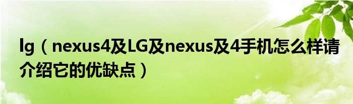大家好,小常来为大家解答以上问题。lg,nexus4及LG及nexus及4手机怎么样请介绍它的优缺点很多人还不知道,现在让我们一起来看看吧!