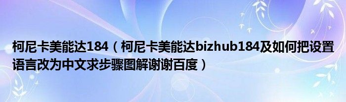 大家好,小常来为大家解答以上问题。柯尼卡美能达184,柯尼卡美能达bizhub184及如何把设置语言改为中文求步骤图解谢谢百度很多人还不知道,现在让我们一起来看看吧!