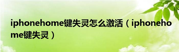 大家好,慧慧来为大家解答以上问题,iphonehome键失灵怎么激活,iphonehome键失灵很多人还不知道,现在让我们一起来看看吧!