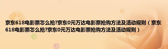 大家好,今天小悦来为大家解答以上问题。京东618电影票怎么抢?京东0元万达电影票抢购方法及活动规则,京东618电影票怎么抢?京东0元万达电影票抢购方法及活动规则很多人还不知道,现在让我们一起来看看吧!