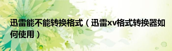 大家好,今天小悦来为大家解答以上问题。迅雷能不能转换格式,迅雷xv格式转换器如何使用很多人还不知道,现在让我们一起来看看吧!