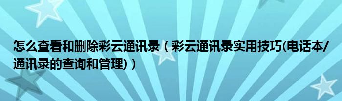 大家好,今天小悦来为大家解答以上问题。怎么查看和删除彩云通讯录,彩云通讯录实用技巧(电话本/通讯录的查询和管理)很多人还不知道,现在让我们一起来看看吧!