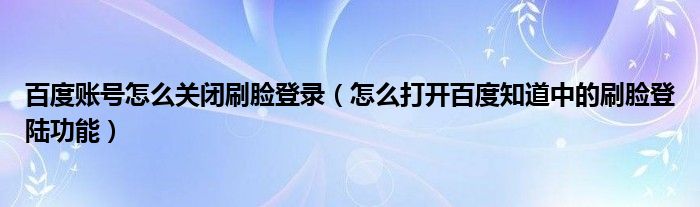 大家好,今天小悦来为大家解答以上问题。百度账号怎么关闭刷脸登录,怎么打开百度知道中的刷脸登陆功能很多人还不知道,现在让我们一起来看看吧!