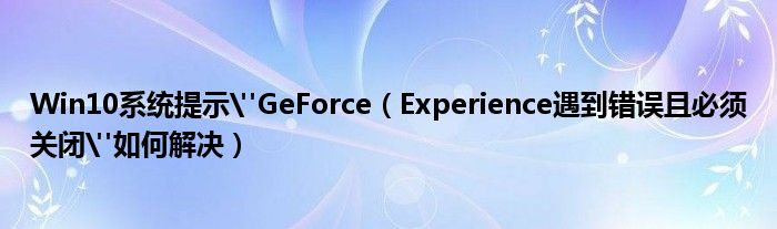 大家好,今天小悦来为大家解答以上问题。Win10系统提示"GeForce,Experience遇到错误且必须关闭"如何解决很多人还不知道,现在让我们一起来看看吧!