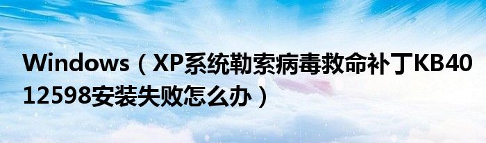 大家好,今天小悦来为大家解答以上问题。Windows,XP系统勒索病毒救命补丁KB4012598安装失败怎么办很多人还不知道,现在让我们一起来看看吧!