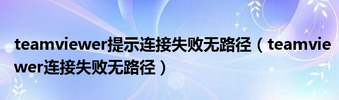 teamviewer提示连接失败无路径(teamviewer连接失败无路径)
