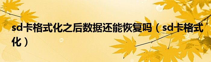 大家好,慧慧来为大家解答以上问题,sd卡格式化之后数据还能恢复吗,sd卡格式化很多人还不知道,现在让我们一起来看看吧!