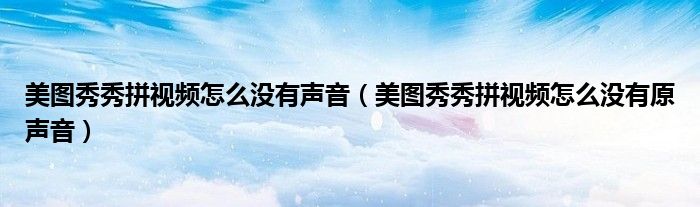 大家好,跳跳为你解答以上问题。美图秀秀拼视频怎么没有声音,美图秀秀拼视频怎么没有原声音这个问题很多人还不知道,现在让我们一起来看看吧!