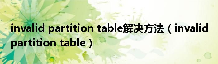 大家好,慧慧来为大家解答以上问题,invalid partition table解决方法,invalid partition table很多人还不知道,现在让我们一起来看看吧!