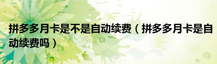 大家好,跳跳为你解答以上问题。拼多多月卡是不是自动续费,拼多多月卡是自动续费吗这个问题很多人还不知道,现在让我们一起来看看吧!
