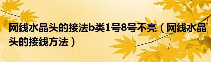 大家好,慧慧来为大家解答以上问题,网线水晶头的接法b类1号8号不亮,网线水晶头的接线方法很多人还不知道,现在让我们一起来看看吧!