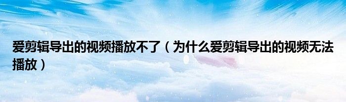 大家好,跳跳为你解答以上问题。爱剪辑导出的视频播放不了,为什么爱剪辑导出的视频无法播放这个问题很多人还不知道,现在让我们一起来看看吧!