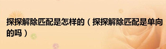 大家好,跳跳为你解答以上问题。探探解除匹配是怎样的,探探解除匹配是单向的吗这个问题很多人还不知道,现在让我们一起来看看吧!