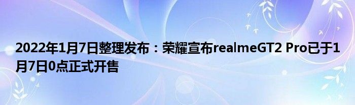 2022年1月7日整理发布:今天,realme宣布realme GT2 Pro将于1月7日0点正式开售,首发起售价3699元(8GB+128GB),与小米12起售价相同。