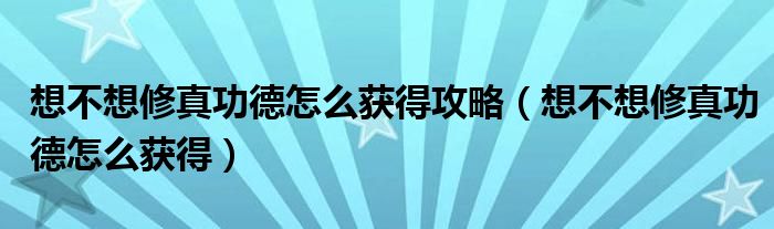 想不想修真功德怎么获得攻略(想不想修真功德怎么获得)