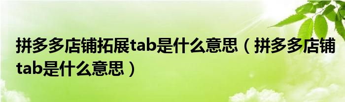 大家好,跳跳为你解答以上问题。拼多多店铺拓展tab是什么意思,拼多多店铺tab是什么意思这个问题很多人还不知道,现在让我们一起来看看吧!