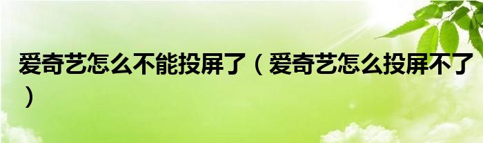 大家好,跳跳为你解答以上问题。爱奇艺怎么不能投屏了,爱奇艺怎么投屏不了这个问题很多人还不知道,现在让我们一起来看看吧!